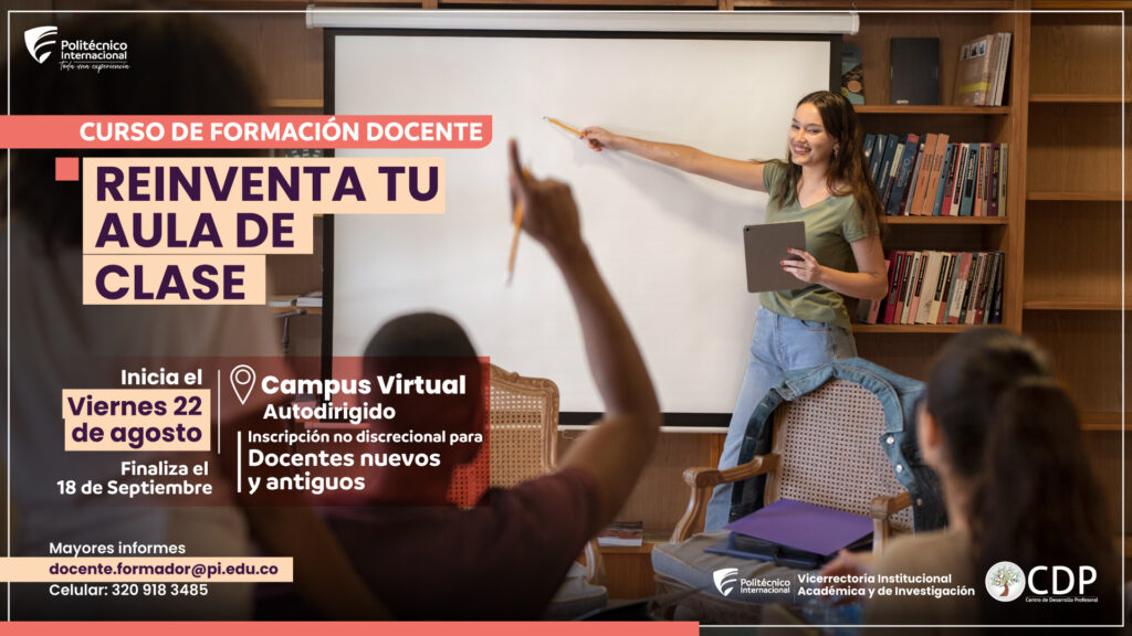 El Centro de Desarrollo Profesoral (CDP) es el área que promueve la excelencia docente, alineándose con la misión y visión del Politécnico Internacional, liderando estrategias de apoyo a través de la formación y evaluación, para fortalecer los procesos de enseñanza y aprendizaje y así consolidar un cuerpo profesoral sólido que impacte y transforme las prácticas pedagógicas, respondiendo a los desafíos educativos del siglo XXI.